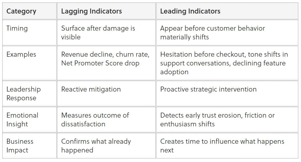 Leading vs. Lagging Customer Signals